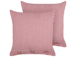 2 bawełniane poduszki dekoracyjne w paski 45 x 45 cm czerwono-białe AALITA Odmień wystrój swojego domu dzięki temu eleganckiemu zestawowi poduszek. Wykonane ...