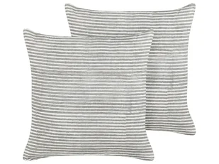 2 lniane poduszki deoracyjne w paski 50 x 50 cm szaro-białe KANPAS Wnieś przytulność do swojego domu dzięki temu zestawowi dwóch dekoracyjnych poduszek. Dzię...