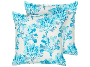 2 poduszki dekoracyjne w koral bawełniane 45 x 45 cm biało-niebieskie ROCKWEED Wzbogać wystrój swojego domu za pomocą tych kwadratowych poduszek, które dodad...