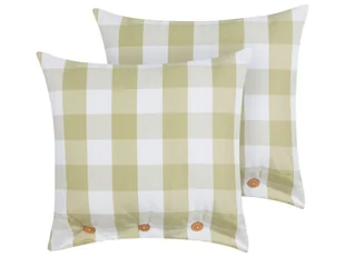 2 poduszki dekoracyjne w kratę 45 x 45 cm zielone TAMNINE Stwórz w swoje sypialni sielski klimat, korzystając z tego uroczego kompletu poduszek w kratkę. Dzi...