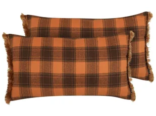 2 poduszki dekoracyjne w kratę z frędzlami 40 x 70 cm pomarańczowe BARJA Nadaj niepowtarzalnego uroku swojej przestrzeni dzięki temu wyjątkowemu zestawowi po...