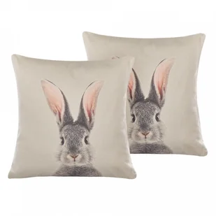 Dwie kwadratowe poduszki na sofę z motywem króliczka. Odkryj dekoracyjne poduszki, które wprowadzą zarówno radosny wielkanocny nastrój, jak i uroczy wygląd do Twojego salonu. Przednia część poszewek na poduszki ma nadrukowany wzór przedstawiający uroczego króliczka. Tył poszewek w jednolitym kolorze posiada praktyczne zamki błyskawiczne. Oznacza to, że poszewki można po prostu zdjąć w celu wyczyszczenia lub wymienić na inne, jeśli zajdzie taka potrzeba.