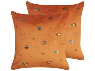 Nowoczesny, pomarańczowy zestaw 2 poduszek z eleganckim motywem oczu i ust. Piękna paleta kolorów i motyw sprawiają, że ten zestaw poduszek na sofę jest idealnym dodatkiem do każdego nowoczesnego pokoju. Miękkie poszewki są wyposażone w zamki błyskawiczne i są łatwe do czyszczenia. Dzięki grubemu poliestrowemu wypełnieniu te poduszki dekoracyjne zapewniają przyjemne podparcie podczas relaksu na sofie, fotelu lub krześle. Nadrukowany wzór w oczy i usta to doskonały akcent uzupełniający wszystkie wnętrza w stylu boho, eklektycznym lub retro.
