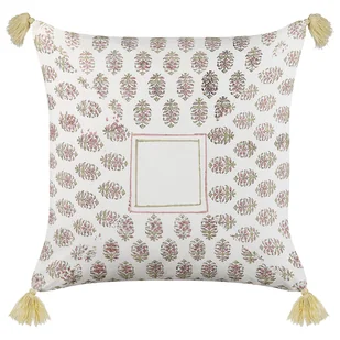 Ręcznie wykonana poduszka ozdobna z frędzlami. Uzupełnij wystrój swojego salonu tą poduszką dekoracyjną w stylu romantycznym. Poszewka z bawełny posiada geometryczny wzór, ręcznie wykonany metodą druku blokowego i jest wyposażona w zamek błyskawiczny. Wysokiej jakości wypełnienie z poliestru nadaje poduszce niesamowitą miękkość. Szczegóły: Typ produktu:
