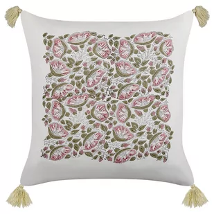 Ręcznie wykonana poduszka ozdobna z frędzlami. Wprowadź kwiatowy akcent do swojego wnętrza dzięki tej stylowej poduszce dekoracyjnej z frędzlami. Poszewka, wykonana z bawełny i ręcznie zdobiona techniką druku blokowego, wyposażona została w miękkie wypełnienie i zamek błyskawiczny. Poduszka będzie znakomitą dekoracją do sypialni i salonu w stylu tradycyjnym i boho. Szczegóły: Typ produktu: