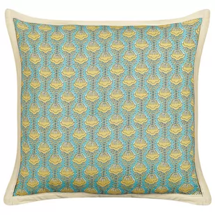 Miękka, niebieska poduszka dekoracyjna z ozdobnym wzorem i miękką aksamitną lamówką. Rozjaśnij swój salon lub sypialnię dzięki tej kolorowej poduszce z tkaniny. Miękka poszewka jest wykonana z wysokiej jakości bawełny i ma grube wypełnienie, dzięki czemu można jej używać nie tylko jako dekoracji, ale także do odpoczynku. Dzięki ręcznie wykonanemu motywowi, który powstaje w procesie druku blokowego, każdy model jest wyjątkowy. Ukryty zamek błyskawiczny umożliwia szybkie zdjęcie, wymianę i wypranie poszewki.