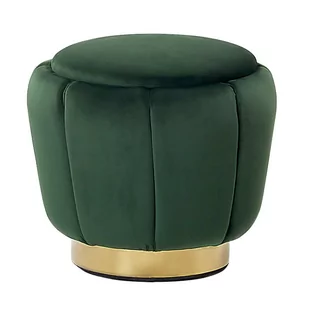 Dekoracyjny puf ze złotą podstawą Welurowy puf z dekoracyjnymi przeszyciami doda uroku każdej przestrzeni dziennej czy domowemu biuru. Dzięki najwyższej jakości aksamitnej tapicerce i błyszczącej złotej podstawie nie tylko ożywia każdą aranżację, ale także dodaje jej eleganckiego charakteru. Puf jest wielofunkcyjny - możesz użyć go jako siedziska dla gości, wygodnego podnóżka czy stołka do toaletki. Szczegóły: Kolor: Zielony, Złoty. Materiał: Welur. Dodatkowy materiał: