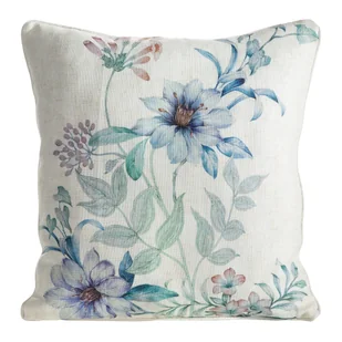Poduszka z lekkiej tkaniny imitującej len, jest przyjemna w dotyku i pozwala znakomicie się zrelaksować podczas wypoczynku na kanapie. Poduszkę zdobi nadruk niebieskich kwiatów a brzegi wykończone zostały ozdobną lamówką. Zamek błyskawiczny z praktycznym suwakiem wszyty w jednym z boków umożliwia szybką i bezproblemową zmianę poszewki. Zamek błyskawiczny wszyty w jednym z boków umożliwia szybką zmianę poszewki.