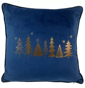 Poduszka welurowa kwadratowa granatowa ze złotymi choinkami, 40x40cm