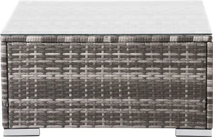 Najważniejsze cechy produktu: Wysokiej jakości polirattan: odporny na promieniowanie UV i łatwy do czyszczeniaSolidny szklany blat: wytrzymuje obciążenie do 30 kgLekka aluminiowa rama: odporna na rdzę i warunki atmosferyczne.