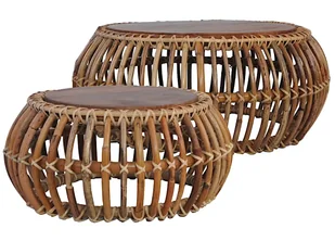 Stwórz naturalne piękno w Twoim salonie Duet stolików - większy i mniejszy, idealnie komponujący się ze sobą. Wyjątkowy design w stylu boho. Piękny brązowy kolor, który przyniesie do Twojego salonu powiew natury. Materiały najwyższej jakości. Połączenie natury i designu Blat stołów wykonany z naturalnego drewna tekowego, słynącego z wytrzymałości i piękna.