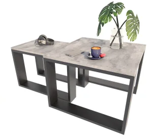 Industrialny Zestaw Stolików Kawowych Beton + Czarny L8-D74