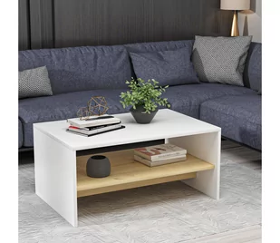 Idealny stolik kawowy do nowoczesnego salonuJesteś zmęczony poszukiwaniem idealnego stolika kawowego, który łączy w sobie styl, funkcjonalność i trwałość? Nie szukaj dalej! Nasz 2-poziomowy stolik kawowy przekształci Twój salon w nowoczesną oazę. Uwolnij moc elegancji i praktycznościWykonany z najwyższą precyzją stolik kawowy charakteryzuje się jednolitą kolorystyką, która bez trudu wkomponuje się w każdy wystrój wnętrza. Połączenie kolorów białego i szafirowego dębu dodaje odrobinę wyrafinowania do Twojej przestrzeni, czyniąc go idealnym elementem centralnym Twojego salonu. Niezrównana jakość i trwałośćTen stolik kawowy został wykonany w 100% z płyty wiórowej pokrytej melaminą. Grubość 18 mm zapewnia solidność i stabilność, pozwalając na umieszczenie ulubionych książek, czasopism lub przedmiotówReplika acyjnych bez obaw.