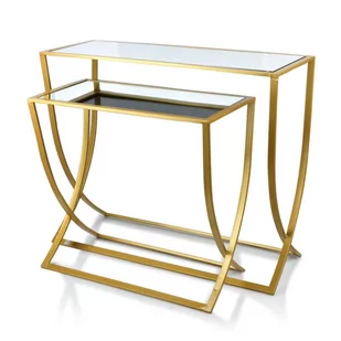 Komplet dwóch konsoli CEDRIC wykonany z metalu i lustra. Dzięki połaczeniu metalu w kolorze z lustrzanym blatem nabiera charakteru i świetnie oddaje go wnętrzu. Sprawdzi się idelanie w przedpokoju, salonie a nawet sypialni. XL: