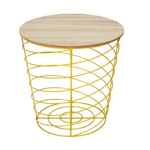 Żółty (rama) i naturalne drewno (blat)Zastosowanie: Stolik kawowy, stolik do przechowywania, stolik na rośliny, stolik bocznyDo użytku wewnątrz: TakWybierz stolik WDMT Metal Wire Basket Side Table i stwórz stylową, zorganizowaną i zachęcającą przestrzeń życiową, z której możesz być dumny.