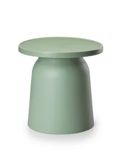 Nowoczesny zielony stolik kawowy z tworzywa sztucznego, idealny do salonu, sypialni i na taras – stylowy, funkcjonalny i odporny na warunki atmosferyczne.