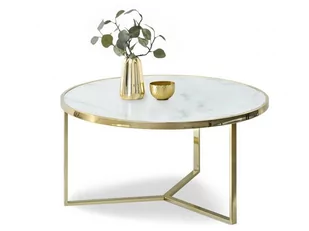 cechy blat okrągły Kolorystyka kolor blatu: marmur biały kolor podstawy: złoty przeznaczenie lokal usługowy, salon styl wnętrzarski współczesny, glamour Wymiary i waga długość: 80 cm szerokość: 80 cm wysokość: