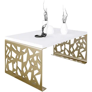 Materiał: najwyższej jakości metal pomalowany proszkowo odpornym na zarysowania i zadrapania; płyta meblowa o podwyższonej trwałości i gęstości. Kolor: stelaż: złoty; blat: biały mat . Kliknij w link i sprawdź także inne stoliki kawowe glamour w sklepie Edinos. pl. Stwórz swóją praktyczną przestrzeń .