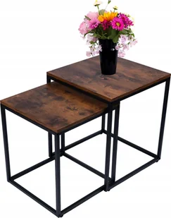 Nowoczesne stoliki kawowe kwadratowe zestaw 2w1 loft industrial ława stół stolik dąb antyczny