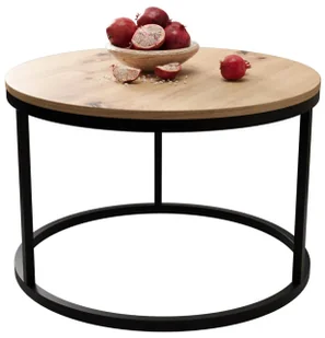 blat z płyty melaminowanej klasy E1 i metalowa podstawa malowana proszkowo zapewniają trwałość. Estetyczne wykończenie: obrzeże z tworzywa ABS dodaje wytrzymałości i uzupełnia wygląd stolika. Nowoczesny design: okrągły kształt i elegancka podstawa tworzą nowoczesny, ale uniwersalny wygląd.
