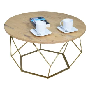 Materiał: najwyższej jakości metal pomalowany proszkowo odpornym na zarysowania i zadrapania, płyta laminowana o podwyższonej trwałości i gęstości. Kolor: stelaż: złoty, blat: dąb lancelot . Kliknij w link i sprawdź także inne okrągłe stoliki kawowe w sklepie Edinos. pl. Stwórz swóją praktyczną przestrzeń .