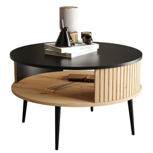połączenie czerni oraz drewnianego dekoru nadaje stolikowi harmonijnego charakteru. To połączenie sprawia, że Darvex doskonale komponuje się z różnymi stylami aranżacji. Funkcjonalność: stolik nie tylko wygląda stylowo, ale także oferuje dodatkową przestrzeń na rzeczy, co jest niezwykle praktyczne w codziennym użytkowaniu. Uniwersalne zastosowanie: