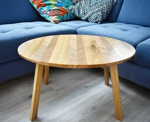 Oval Chevron - Dębowy stolik kawowy z mozaiką chevron