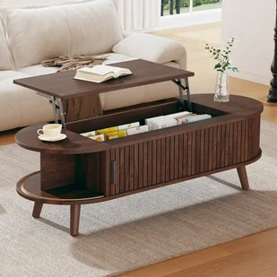 Zalety: Możliwość podnoszenia / Elegancki design / Kolor orzechowy / Ukryta przestrzeń do przechowywania / 4 nogi z litego drewna