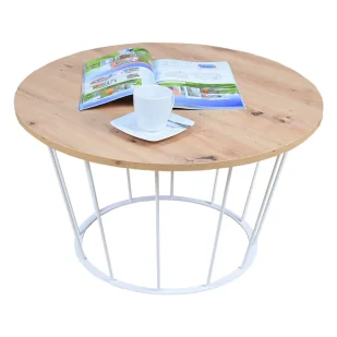 płyta laminowana o podwyższonej trwałości i gęstości. Zobacz wszystkie dostępne wersje kolorystyczne okrągłego stolika kawowego Egiza i wybierz ten, który najbardziej przypadnie Ci do gustu. Najważniejsze informacje: Wymiary: wysokość: 43 cm (z blatem), średnica: 75 cm, grubość blatu: