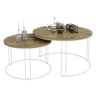 Stylowe, funkcjonalne i oszczędzające miejsce - oto zestaw dwóch okrągłych stolików kawowych Olona 5X marki Elior z drucianym stelażem! Ta doskonała kombinacja designu i praktyczności sprawi, że Twoje wnętrze nabierze nowego charakteru. Minimalistyczny design. Maksymalna funkcjonalność.