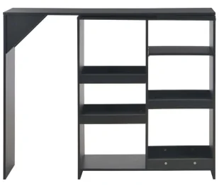Ten mebel doskonale wpasuje się w nowoczesne i skandynawskie wnętrza i nie przytłoczy ich wizualnie. Mebel marki Elior ma czarny kolor, co sprawia, że znakomicie wkomponuje się on w Twój salon czy kuchnię, przez swoją uniwersalność. Odcień czerni to prostota i minimalizm, które królują w większości współczesnych wnętrz. Stolik barowy Karmil będzie więc doskonale prezentował się praktycznie z każdym kolorem i nada pomieszczeniom eleganckiego wymiaru. Najlepszy efekt uzyskamy, łącząc go jednak z szarością, brązem lub granatem.