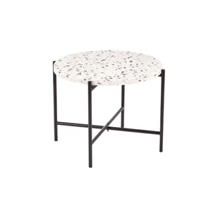 Stolik kawowy biały okrągły Lastrico marki Halmar Ława Lastrico to mebel obok, którego nie można przejść obojętnie. Zaskakuje ona swoim niecodziennym designem. Doskonale wkomponuje się we wnętrza urządzone w stylu nowoczesnym. Stolik został wykonany z lastryko - materiału odpornego na promieniowanie UV, ścieranie i warunki atmosferyczne, dzięki czemu z powodzeniem można ustawić mebel na tarasie czy balkonie. Wytrzymały blat umieszczony jest na stalowych nogach malowanych proszkowo.