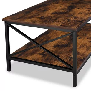 Stolik kawowy ława rustykalna loft HERNING Herning to świetny przykład mebla praktycznego i wyróżniającego się wyjątkowym designem. Solidna konstrukcja ze stali malowanej proszkowo i laminowana płyta przypominająca postarzany dąb świetnie się łączą, tworząc ławę kawową o nowoczesnym wzornictwie. Model doskonale sprawdzi się jako stolik kawowy w oryginalnie urządzonych salonach. Idealnie pasuje do stylu loftowego, industrialnego i vintage. Herning został wykonany z materiałów najwyższej jakości z zachowaniem dbałości o najmniejsze szczegóły.