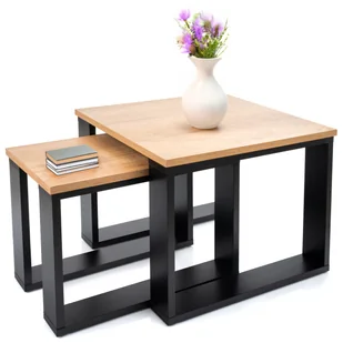 STOLIK KAWOWY LEHMANN 2 szt ŁAWA LOFT RETRO DĄB GOLD STÓŁ PODWÓJNY 50x50 cm + 50x30 cmNowoczesne meble do salonu w stylu industrialnym. To najlepsze dopełnienie domu i mieszkania w nowoczesnym stylu, które równocześnie idealnie wpasowuje się również w inne uniwersalne wzornictwo. Komplet stolików kawowych kwadratowy i prostokątny Dąb GoldSpecyfikacja: Wykonanie: płyta dąb gold / nogi – płyta meblowa czarnaWymiary opakowania: 56x13,5x54,5 cmWymiary małego stolika:
