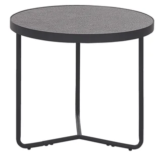 Industrialny stolik z metalowymi nogami. Podkreśl charakter wnętrza swojego mieszkania tym industrialnym stolikiem kawowym. Mebel posiada okrągły blat z wykończeniem przypominającym beton. Jego czarne, matowe nogi zapewniają konstrukcji stabilne podparcie. Stolik idealnie sprawdza się nie tylko jako miejsce do serwowania kawy gościom, ale także w roli stolika nocnego czy pomocniczego.