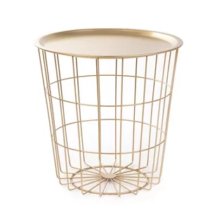 Stolik | SCANDI | złoty ze złotym blatem | 41x41x41 cm | 868684 Kod produktu: 219368 Producent: Homla. Wygodne miejsce do przechowywania pod blatem Nowoczesny design Wysokość: 41 cm Średnica blatu: 41 cm Złoty stolik z miejscem do przechowywania Stylowy stolik HOMLA SCANDI w formie kosza zakończonego okrągłym blatem.
