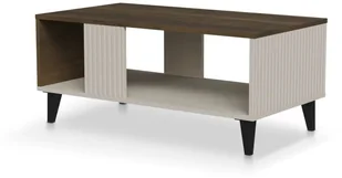 Ława Nowoczesna Ryflowana do Salonu z Półką Kaszmirowa Orzechowa Stolik Kawowy RANDOM 2 Halmar