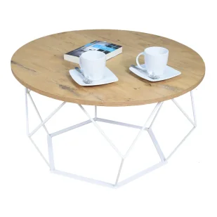 Materiał: najwyższej jakości metal pomalowany proszkowo odpornym na zarysowania i zadrapania, płyta laminowana o podwyższonej trwałości i gęstości. Kolor: stelaż: biały mat, blat: dąb lancelot . Kliknij w link i sprawdź także inne okrągłe stoliki kawowe w sklepie Edinos. pl. Stwórz swóją praktyczną przestrzeń .