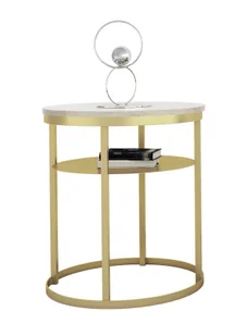 55 cm, grubość blatu: 1,8 cm. Gwarancja: 10 lat (inni producenci oferują maksymalnie 24 miesiące gwarancji. Tylko u nas otrzymujesz pełną jakość potwierdzoną aż 10-letnią gwarancją). Materiał: najwyższej jakości metal pomalowany proszkowo odpornym na zarysowania i zadrapania, płyta laminowana o podwyższonej trwałości i gęstości. Kolor: stelaż: złoty, blat: dąb sonoma .