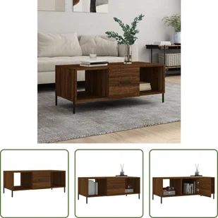 Brązowy dębowy stolik kawowy 102x50x40 cm materiał drewnopochodnyDodaj odrobinę elegancji do swojego salonu dzięki temu stylowemu stolikowi kawowemu. Trwały materiał: Drewno inżynieryjne to wyjątkowej jakości materiał o gładkiej powierzchni, który charakteryzuje się wytrzymałością, stabilnością i odpornością na wilgoć. Mnóstwo miejsca do przechowywania: Dzięki 3 przegrodom ten stolik boczny oferuje mnóstwo miejsca do przechowywania różnych ważnych przedmiotów.