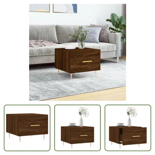 Brązowy dębowy stolik kawowy 50x50x40 cm materiał drewnopochodnyDodaj odrobinę elegancji do swojego salonu dzięki temu stylowemu stolikowi kawowemu. Trwały materiał: Drewno konstrukcyjne to wyjątkowej jakości materiał o gładkiej powierzchni, który charakteryzuje się wytrzymałością, stabilnością i odpornością na wilgoć. Mnóstwo miejsca do przechowywania: Dzięki szufladzie stolik boczny oferuje mnóstwo miejsca do przechowywania różnych ważnych przedmiotów w porządku i w zasięgu ręki.