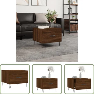 Brązowy dębowy stolik kawowy 50x50x40 cm materiał drewnopochodnyDodaj odrobinę elegancji do swojego salonu dzięki temu stylowemu stolikowi kawowemu. Trwały materiał: Drewno konstrukcyjne to wyjątkowej jakości materiał o gładkiej powierzchni, który charakteryzuje się wytrzymałością, stabilnością i odpornością na wilgoć. Mnóstwo miejsca do przechowywania: Dzięki szufladzie stolik boczny oferuje mnóstwo miejsca do przechowywania różnych ważnych przedmiotów w porządku i w zasięgu ręki.