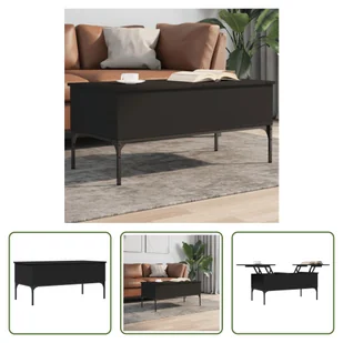 Stolik kawowy czarny 100x50x45 cm materiał drewnopochodny i metalDodaj odrobinę elegancji do swojego salonu dzięki temu stylowemu stolikowi kawowemu. Trwały materiał: Materiał drewnopochodny jest wyjątkowej jakości o gładkiej powierzchni, a także charakteryzuje się wytrzymałością, stabilnością i odpornością na wilgoć. Regulowana wysokość: Blat tego stolika kawowego można łatwo podnieść do wygodnej wysokości, dzięki czemu stolik może być również do pracy lub spożywania posiłków.