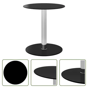 Pozostałe specyfikacjeKolor: czarnyMateriał: Szkło hartowane o szorstkiej, piaskowanej powierzchni, aluminiumWymiary: 40 x 50 cm (średnica x wys.)Grubość blatu: 6 mmŚrednica podstawy: