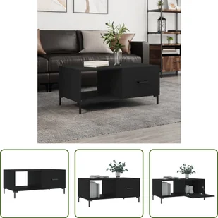 The Living Store Stolik kawowy - czarny - 90x50x40 cm - materiał drewnopochodny - Stolik Kawowy