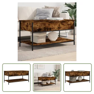 Stolik kawowy dąb wędzony 100x50x50 cm materiał drewnopochodny i metalDodaj odrobinę elegancji do swojego salonu dzięki temu stylowemu stolikowi kawowemu. Trwały materiał: Materiał drewnopochodny jest wyjątkowej jakości o gładkiej powierzchni, a także charakteryzuje się wytrzymałością, stabilnością i odpornością na wilgoć. Dużo miejsca do przechowywania: Stolik kawowy ma ukryty schowek za blatem, w którym można przechowywać często używane przedmioty bez kurzu.