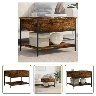 Stolik kawowy dąb wędzony 70x50x50 cm materiał drewnopochodny i metalDodaj odrobinę elegancji do swojego salonu dzięki temu stylowemu stolikowi kawowemu. Trwały materiał: Materiał drewnopochodny jest wyjątkowej jakości o gładkiej powierzchni, a także charakteryzuje się wytrzymałością, stabilnością i odpornością na wilgoć. Dużo miejsca do przechowywania: Stolik kawowy ma ukryty schowek za blatem, w którym można przechowywać często używane przedmioty bez kurzu.
