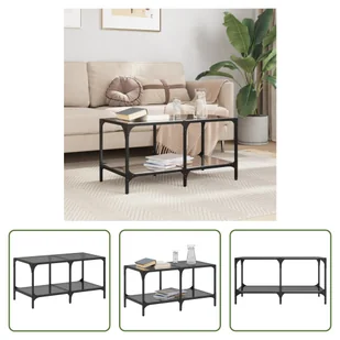 Stolik kawowy ze szklanym blatem czarny 78,5x40x40 cm stalowyDodaj odrobinę elegancji do swojego salonu dzięki temu stylowemu stolikowi kawowemu!Szklany blat: Blat zapewnia widoczną i obszerną przestrzeń na przekąski, napoje, wazony, miski z owocami lub inne przedmioty dekoracyjne. Trwały materiał: Drewno inżynieryjne to wyjątkowej jakości materiał o gładkiej powierzchni, który charakteryzuje się wytrzymałością, stabilnością i odpornością na wilgoć. Wytrzymałość i stabilność: