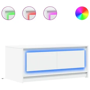 materiał drewnopochodny jest wytrzymały i stabilny oraz charakteryzuje się gładką powierzchnią, odporną na wilgoć, wypaczanie się i rozwarstwianie, dzięki czemu stanowi znakomity wybór do różnych projektów. Spora przestrzeń do przechowywania: stolik oferuje dużo miejsca do przechowywania czasopism, książek, płyt DVD, pilotów i innych drobiazgów w sposób uporządkowany i w zasięgu ręki. Oświetlenie LED RGB tworzące przyjemną atmosferę: stolik ma podświetlenie LED, które można łatwo dostosować, aby uzyskać spersonalizowany efekt świetlny.