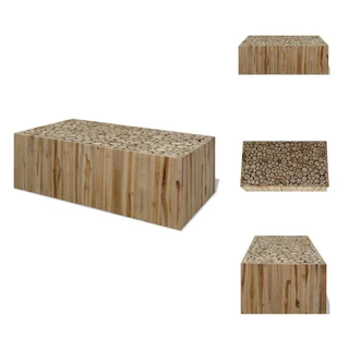 Ten wyjątkowy stolik kawowy będzie wyróżniającym się dodatkiem do Twojego wnętrza. Może być również jako stolik boczny lub stolik nocny. Ten trwały i piękny stolik wykonany jest z prawdziwych plastrów drewna tekowego, które wyglądają jak ułożone w stos kłody. Stolik jest bardzo solidny, trwały i stabilny, dzięki czemu idealnie nadaje się do stawiania na nim napojów, wazonów, roślin doniczkowych, koszy z owocami i innych przedmiotów dekoracyjnych. Jest już zmontowany; montaż nie jest wymagany.